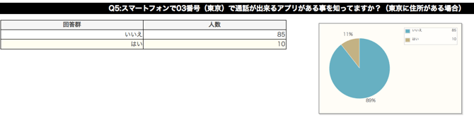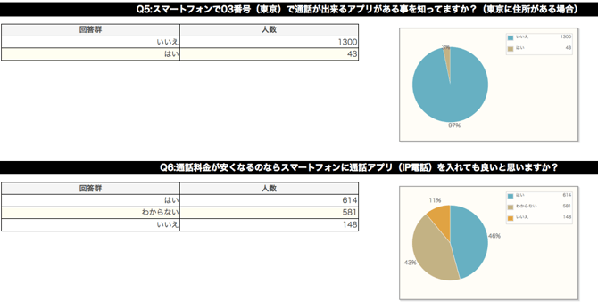 今回のアンケートの目的は、スマートフォンの普及状況の確認と、スマートフォンで利用出来るIP電話の認知度の確認です。